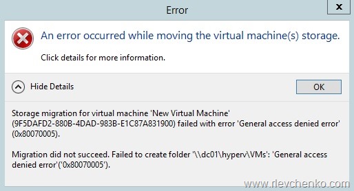 If you receive” “General Access denied error” during VM creation or migration, you have to check permissions on SMB share (my share is “Hyperv” + HV01 and HV02 are smb clients) and constrained delegation (notice that you must have installed Active Directory powershell module):