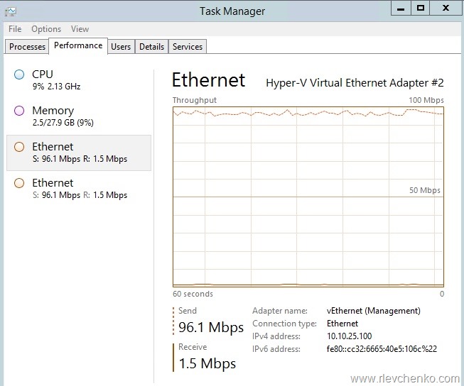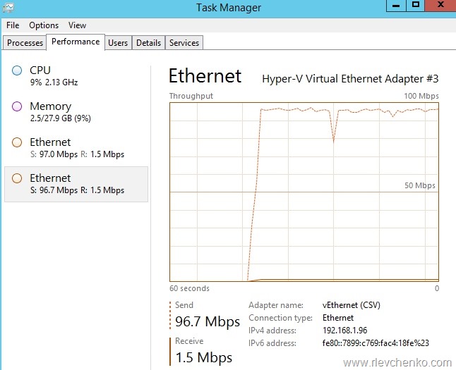My demo: 2 hyper-v hosts (HV01.democorp.ru, HV02.democorp.ru), 1 file server (dc01.democorp.ru . !! it’s not recommended to make a SMB share on domain controller. it’s just a lab!!). 2 network adapters per server. File Server roles are installed by default.