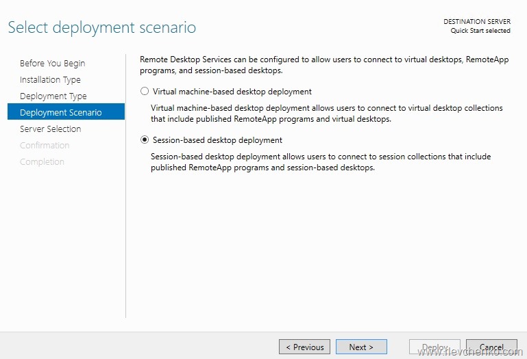 For demo purposes I use Quick Start deployment type (RDCB, RDWA and RDSH will be installed on the same server)