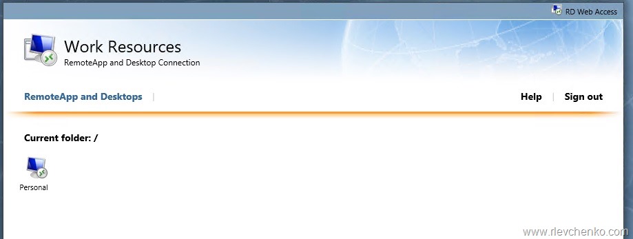 Go to https://<host fqdn>/rdweb , type user’s credential and you’ll see assigned collections