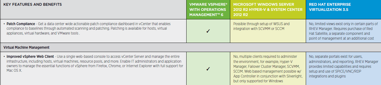 Previous Image Next Image comparison vsphere 6 administration 9 Administration and Management vSphere vs Windows Server and Red Hat