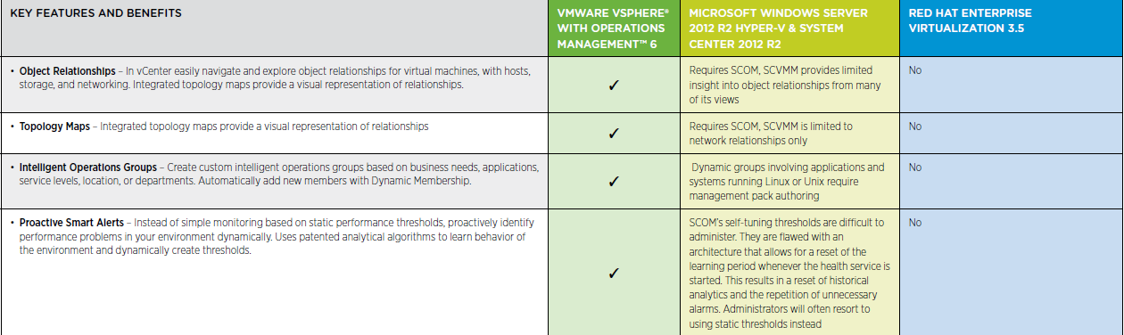 Previous Image Next Image comparison vsphere 6 operations management 1 vSphere Operations Management vs Windows Server and Red Hat