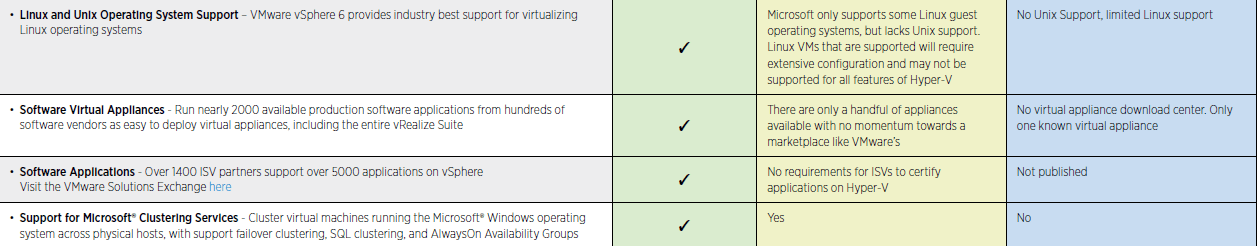Previous Image Next Image comparison vSphere 6 virtualization platform 2 Virtualization Platform vSphere 6 vs Windows Server and Red Hat
