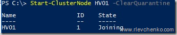 It this case QuarantineThreshold (number of failures before a node is Quarantined. By default, it’s 3) will be reached and node will go into Quarantine state for 2 hours (QuarantineDuration parameter). All VMs will be moved from HV01 to the health HV02 node.
