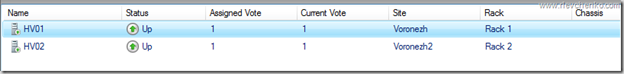 New-ClusterFaultDomain -Name Voronezh -Type Site -Description “Primary” -Location “Voronezh DC” New-ClusterFaultDomain -Name Voronezh2 -Type Site -Description “Secondary” -Location “Voronezh DC2” New-ClusterFaultDomain -Name Rack1 -Type Rack New-ClusterFaultDomain -Name Rack2 -Type Rack New-ClusterFaultDomain -Name HPc7000 -type Chassis New-ClusterFaultDomain -Name HPc3000 -type Chassis Set-ClusterFaultDomain -Name HV01 -Parent Rack1 Set-ClusterFaultDomain -Name HV02 -Parent Rack2 Set-ClusterFaultDomain Rack1,HPc7000 -parent Voronezh Set-ClusterFaultDomain Rack2,HPc3000 -parent Voronezh2