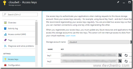 1) Create a new Azure Storage Account (Locally-redundant storage) and copy one of the shared key