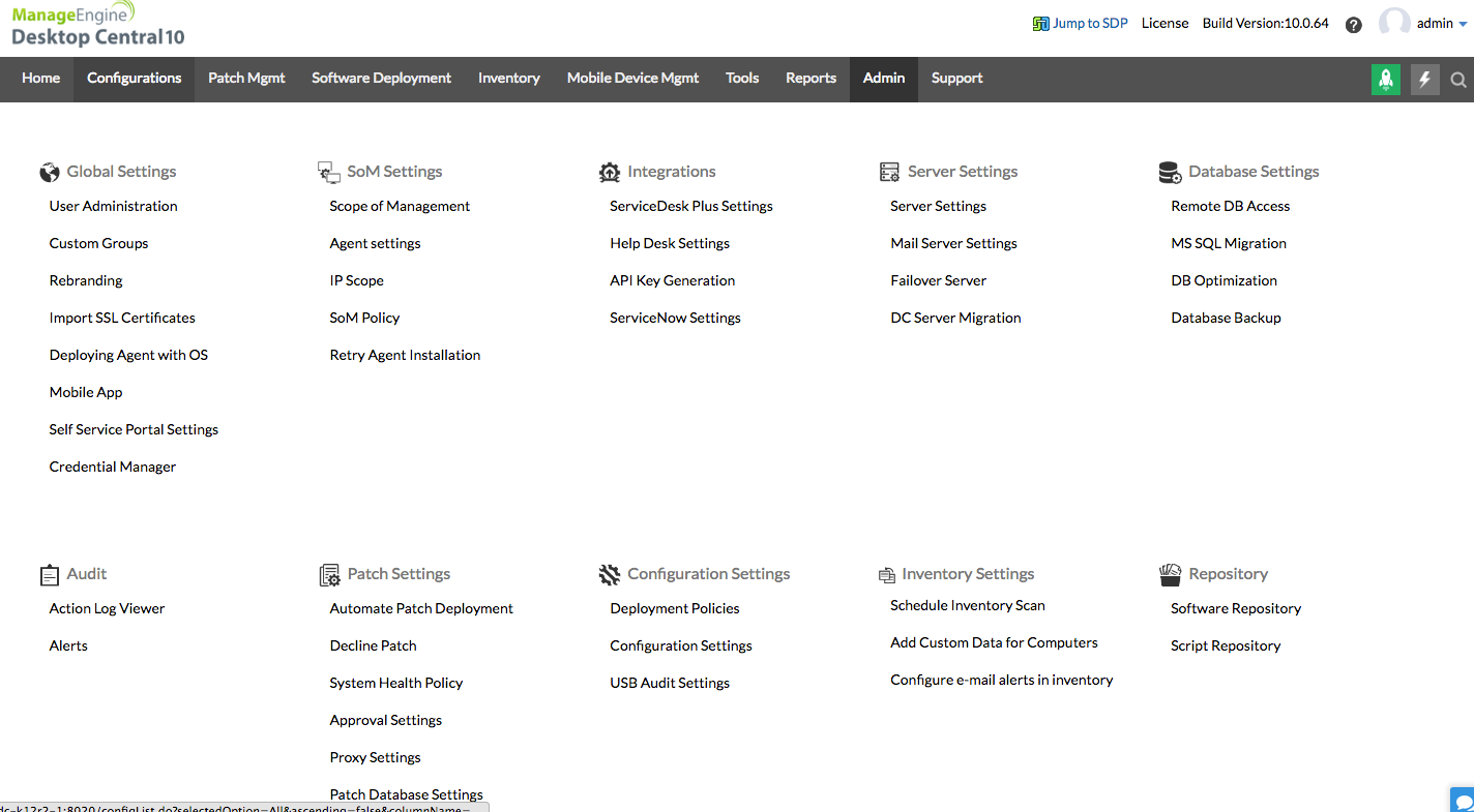 The Web console of Desktop Central provides a central point from where an administrator can manage all the tasks that are related to desktop management. This console can be accessed from anywhere. For example, it can be accessed through a LAN, WAN and from home using the Internet or a VPN. Separate client installations are not required to access the Web console.