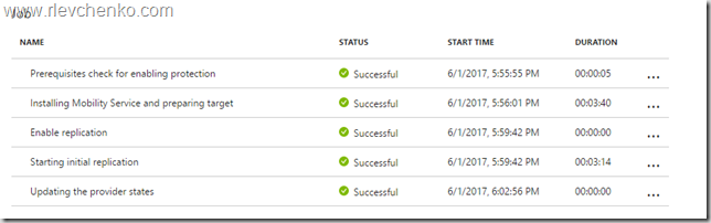 At the next step, ASR enables protection for workloads and initiates replication for them
