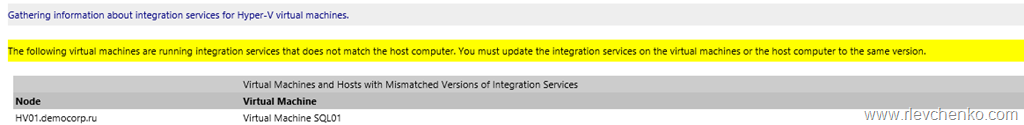 I’ve provided example of outdated IS in a VM SQL01 above. Cluster validation report generates a warning. PowerShell shows 0 in IntegrationServicesVersion