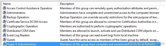 So , if you want to provide Full Access to Hyper-V you simply add users/groups to this built-in group. There is no RBAC (Role-Based Access Control).100% RBAC is available only in VMM.