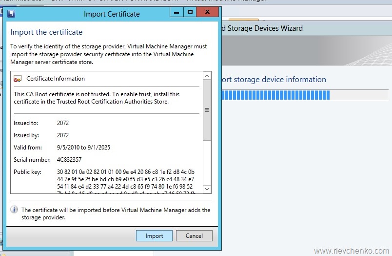 VMM supports local and remote storage (block or file storage). If VMM supports your storage (see “Supported Storage Arrays for System Center 2012 VMM”) you can add one in 4 clicks. Notice some storage devices doesn’t have embedded SMI-S provider. In that case , you need to implement additional “interface” ,called as proxy, between VMM Server and storage device