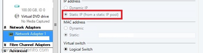 Creating a VM from virtual disk or existing virtual machine is a basic task in every VMM infrastructure. What if you want to assign IP from static pool instead of dynamic which is just the one option by default for such deployments? Well,doing this in wizard, will end by receiving a warning:“You cannot customize IP settings for a stored virtual machine or a virtual hard disk. You can only customize IP settings if you use a VM template” and static IP pool will be grayed out.